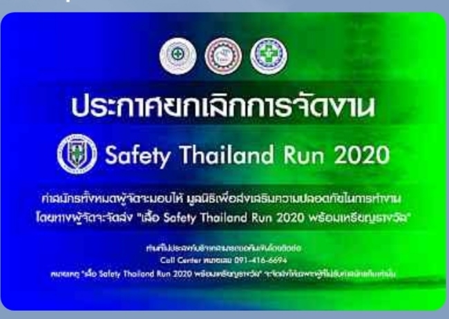 แจ้งยกเลิกการจัดงาน “ Thailand Safety Run 2020 “