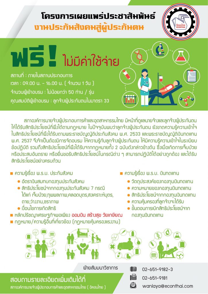 โครงการอบรม..ฟรี….อัดแน่นไปด้วยสาระ ความรู้ จากสำนักงานประกันสังคม ประจำปี 2563 ใน กองทุนประกันสังคม และ กองทุนเงินทดแทน เปิดให้สมาชิกได้จับจองรุ่นกันแล้วตั้งแต่วันนี้ ไปจนกว่าจำนวนรุ่นจะเต็มทั้ง 2 กองทุน